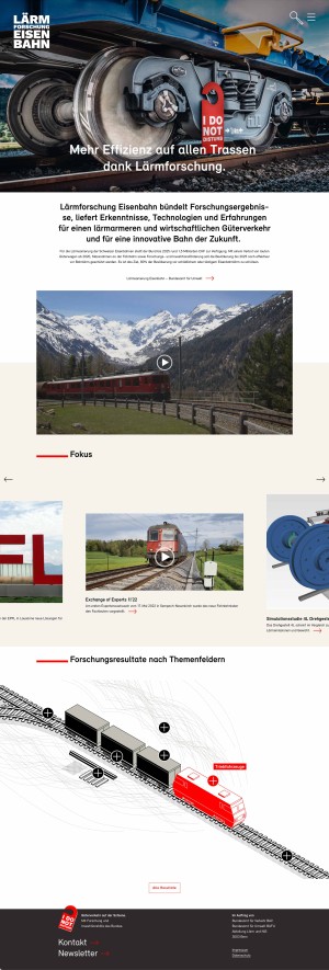 Die Website über die Lärmsanierung der Schweizer Eisenbahnen bündelt Forschungsergebnisse, liefert Erkenntnisse, Technologien und Erfahrungen für einen lärmarmeren und wirtschaftlichen Güterverkehr und für eine innovative Bahn der Zukunft.