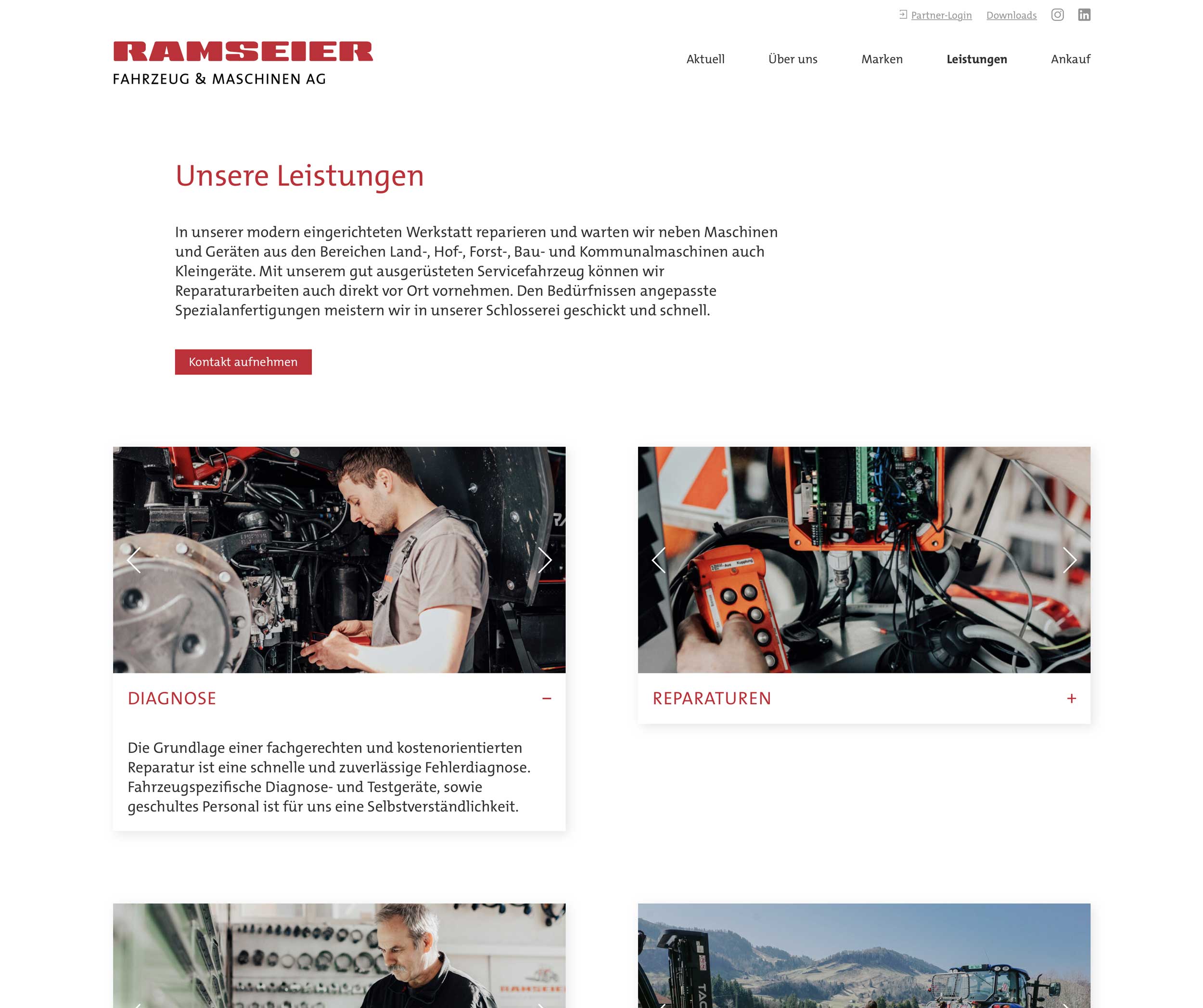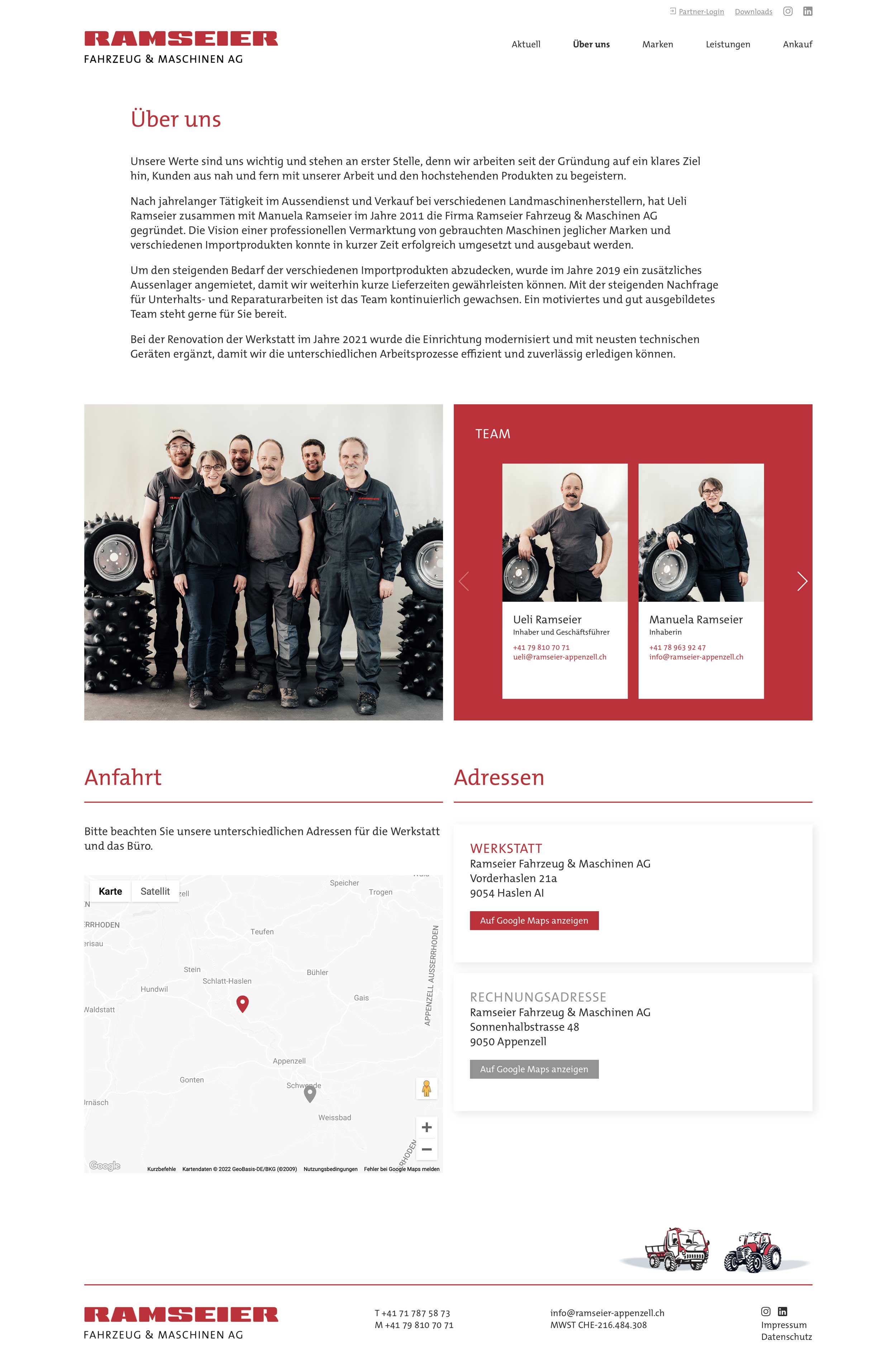 WordPress-Website für Ramseier Fahrzeug & Maschinen AG, Land-, Forst-, Hof- und Kommunaltechnik im Appenzellerland.