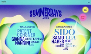 Website für das Summerdays Festival Arbon – das einzigartige Musikerlebnis am Bodensee. Programm, Acts und alle wichtigen Infos rund um den Anlass – stimmungsvoll und stilvoll präsentiert.